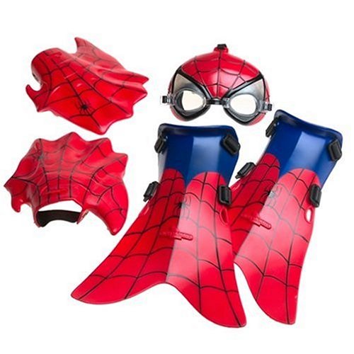 From the web to the water, your little Spider-Man will feel comfortable and safe outfitted in superhero-themed Swim Gear. This super-cool swim set comes with a soft, comfortable swim mask with real swim goggles built-in, long flex fins for lightning-quick speed in the water and two gloves; one of which is a special surprise water-squirting glove so you can soak your friends.